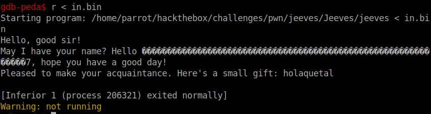 El desafio jeeves es un desafio de pwn en el cual debemos hacer un buffer overflow a una maquina linux remota. Analizado estaticamente el binario podemos observar lo siguiente: