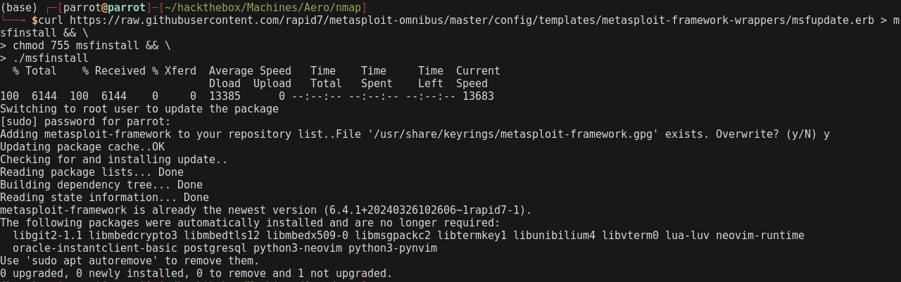 Esta vez traigo una writeup de la maquina de HTB Aero, el cual creo que es interesante porque se hara uso de metasploit para obtener la sesion de usuario y en otros writeups he visto que se usa CobaltStrike o Directamente el POC del creador del exploit que permite obtener la sesion, pero en ninguno se ha hecho uso de metasploit.