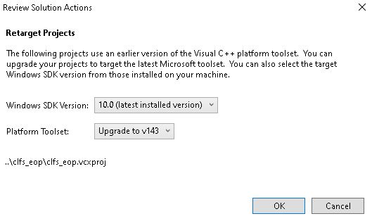 En mi caso como estoy usando vstudio 2022 y el proyecto esta hecho en vstudio 2019 debo hacer click derecho en el icono de solucion y luego click en retarget solution y se me deberia abrir el siguiente cuadro de texto: