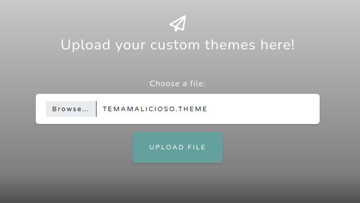THEME_FILE_NAME : este es el archivo que debemos convence a la victima que instale, en este caso lo subiremos en el panel que la web ofrece, podemos colocarle cualquier nombre siempre que tenga la extension .theme .